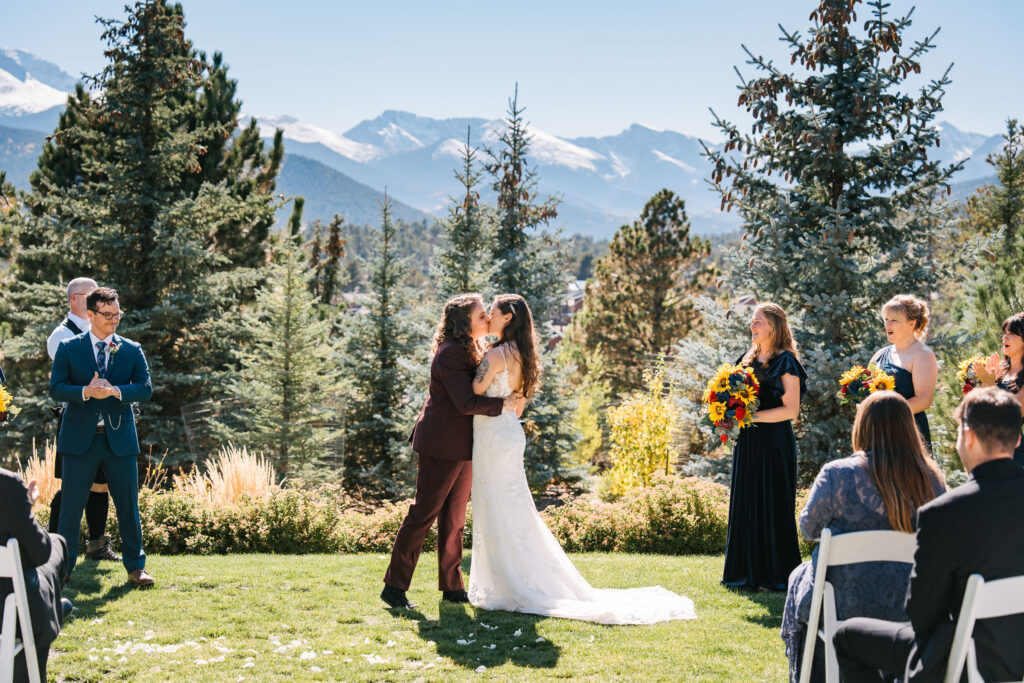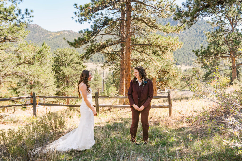 Danielle originally wanted to elope just the two of them, and Sara envisioned a bigger gathering. They found the perfect wedding compromise! They had a small ceremony at the Stanley Hotel, then went to Rocky Mountain National Park just the two of them, then met up again with everyone for dinner at the Bird’s Nest in Estes Park.