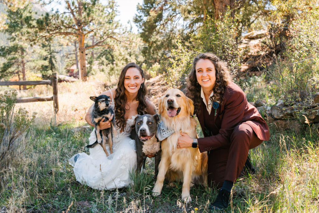 The day began at their Airbnb in Estes Park, where Danielle got ready with their dogs by her side. Sara arrived to the Airbnb for a first look, and then everyone headed to the Stanley Hotel for the ceremony.