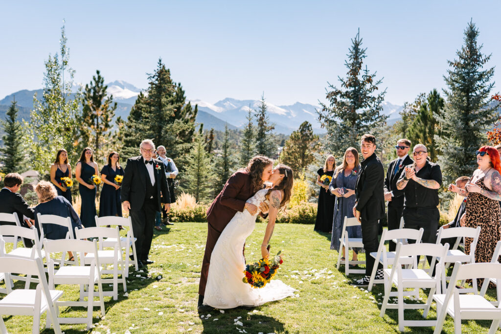 Set on the Longs Peak Lawn, their non-denominational ceremony featured sweeping mountain views and a surprise from HawkQuest! When it came time to exchange rings, a hawk from HawkQuest flew down the aisle and delivered the rings. It was a complete surprise for all of the guests!