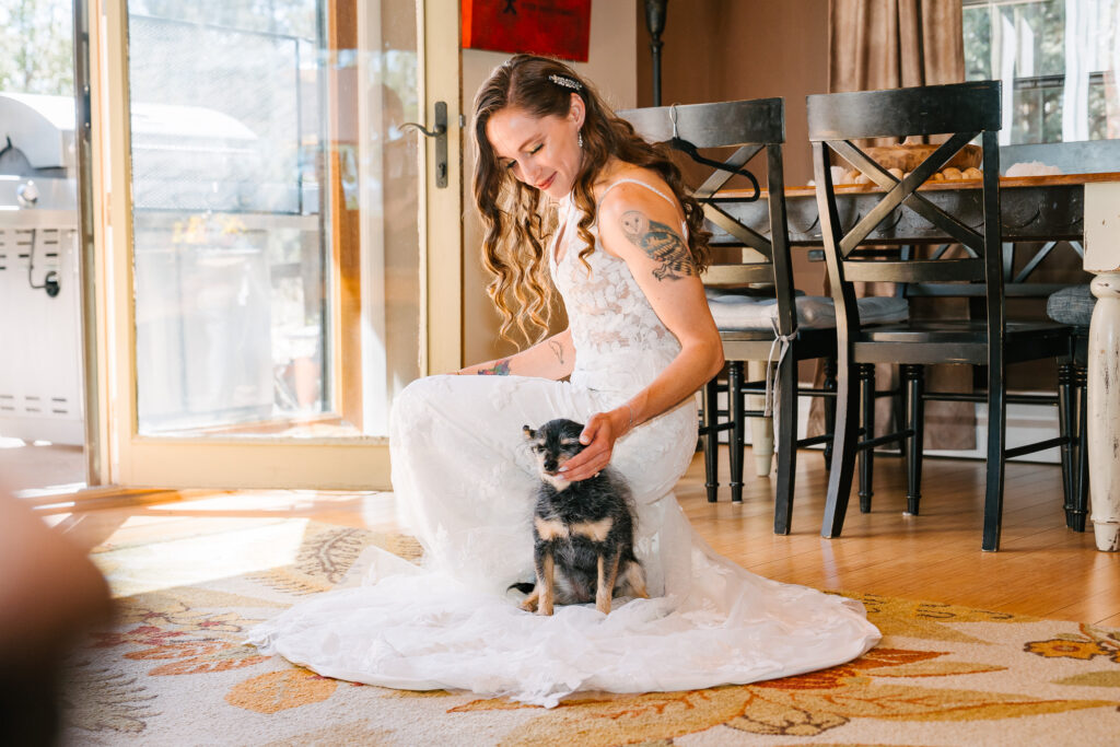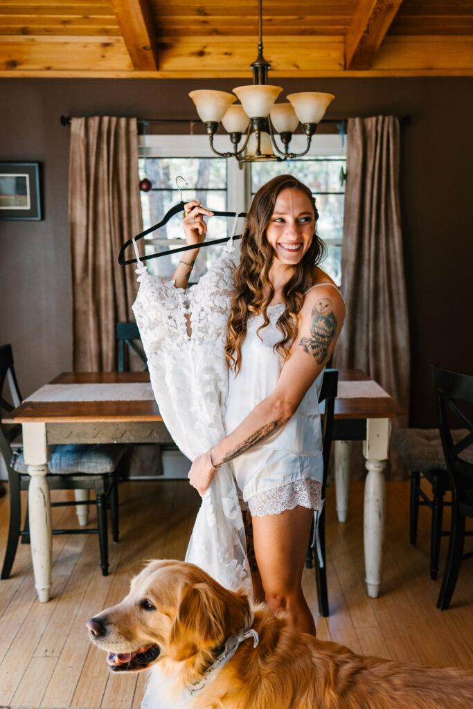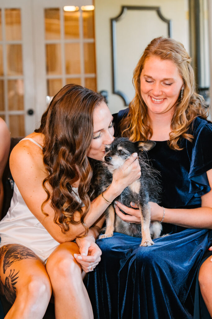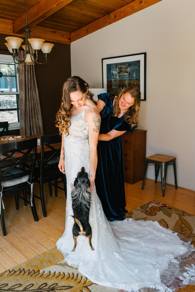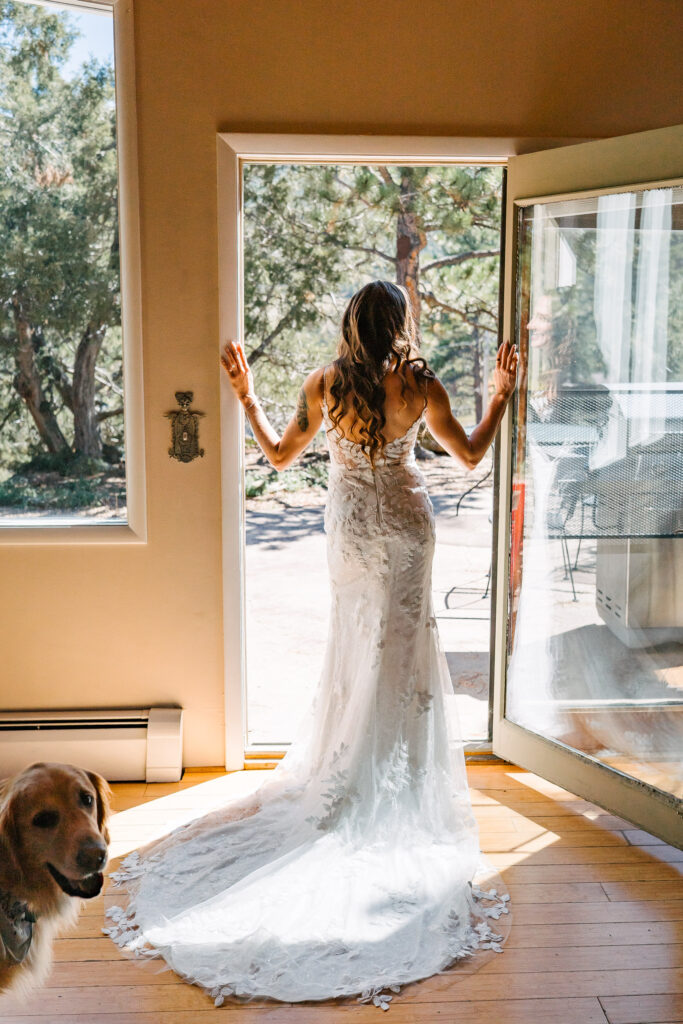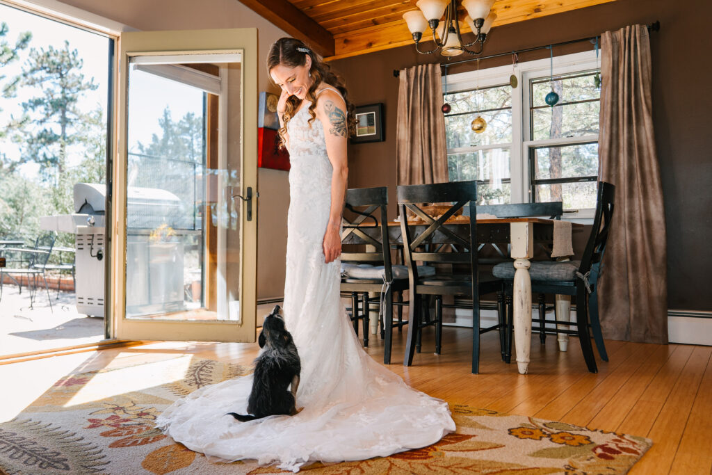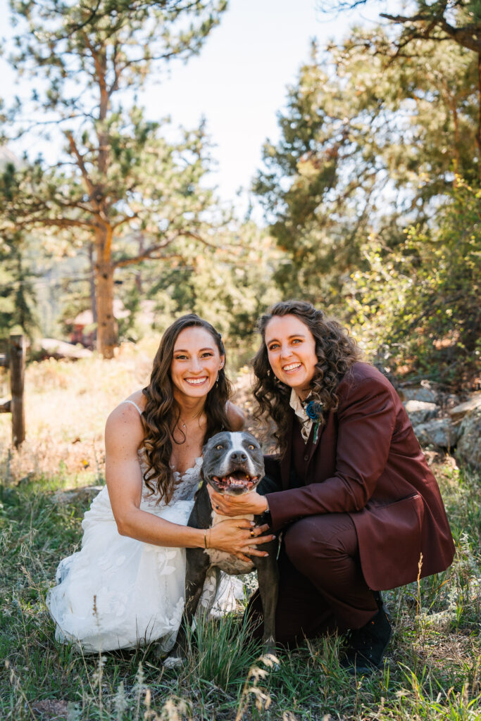 The day began at their Airbnb in Estes Park, where Danielle got ready with their dogs by her side. Sara arrived to the Airbnb for a first look, and then everyone headed to the Stanley Hotel for the ceremony.