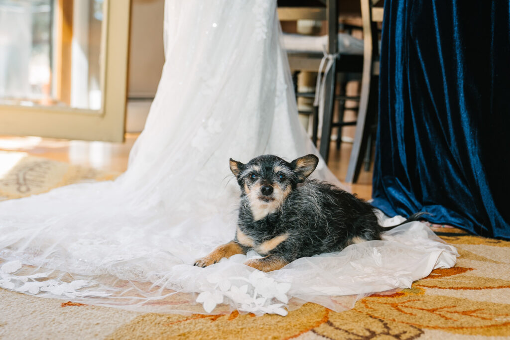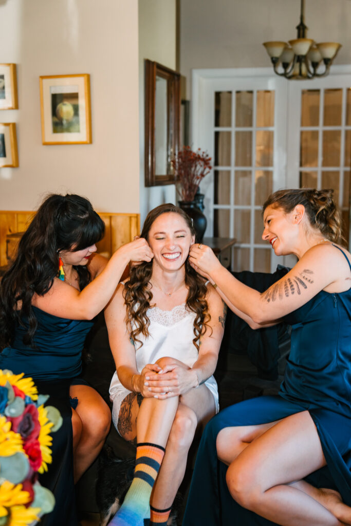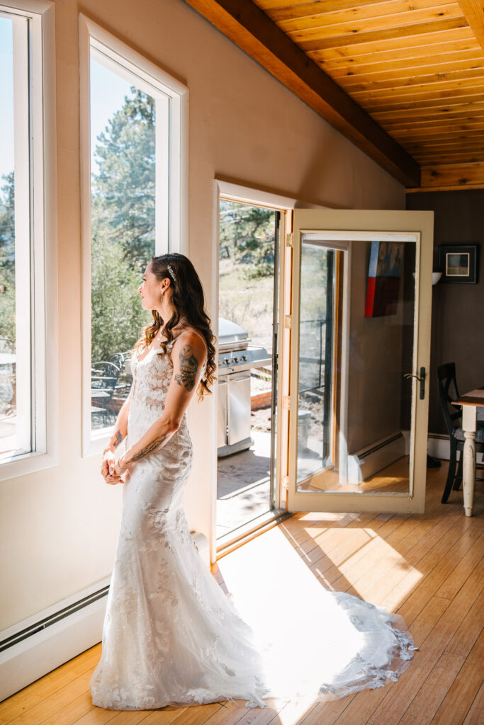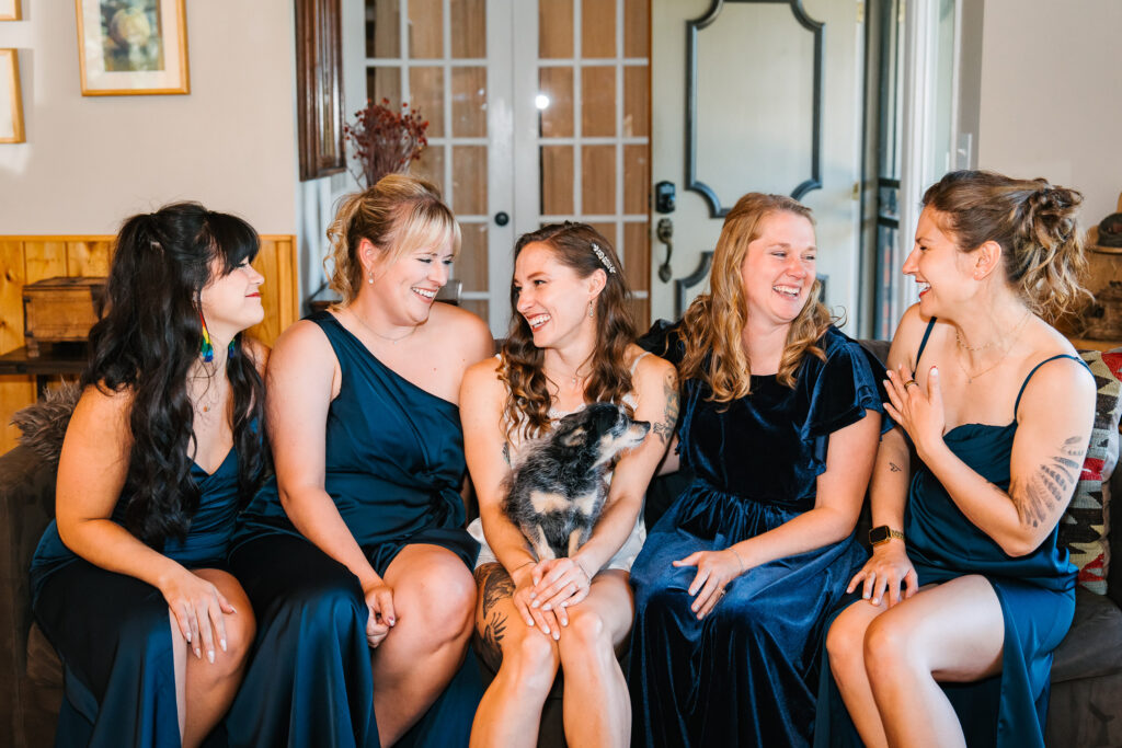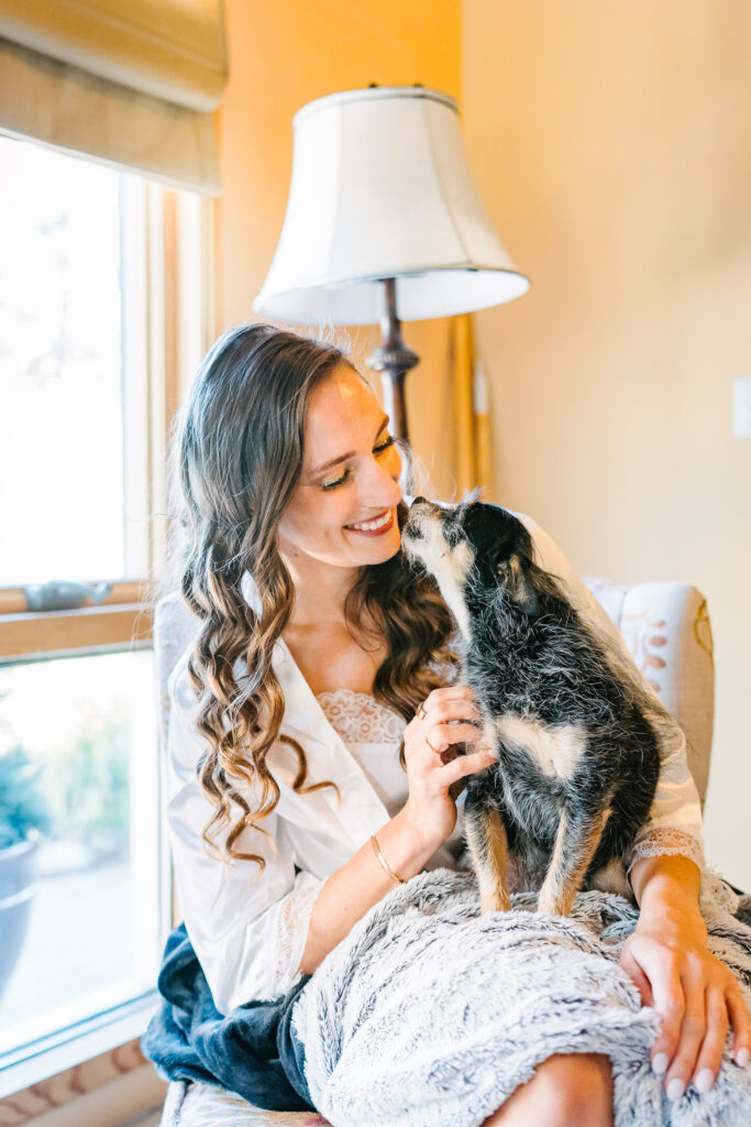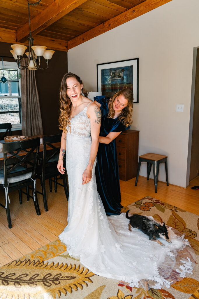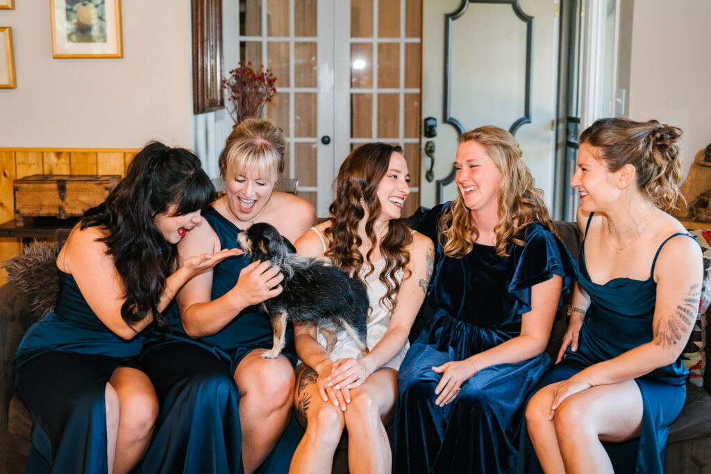 The day began at their Airbnb in Estes Park, where Danielle got ready with their dogs by her side. Sara arrived to the Airbnb for a first look, and then everyone headed to the Stanley Hotel for the ceremony.