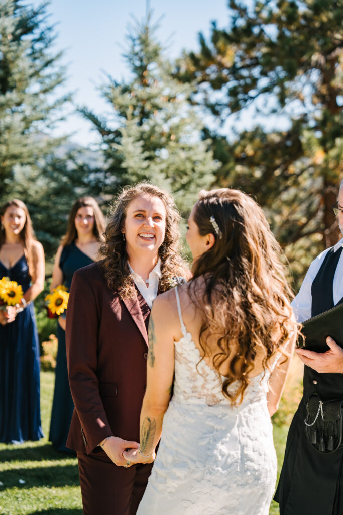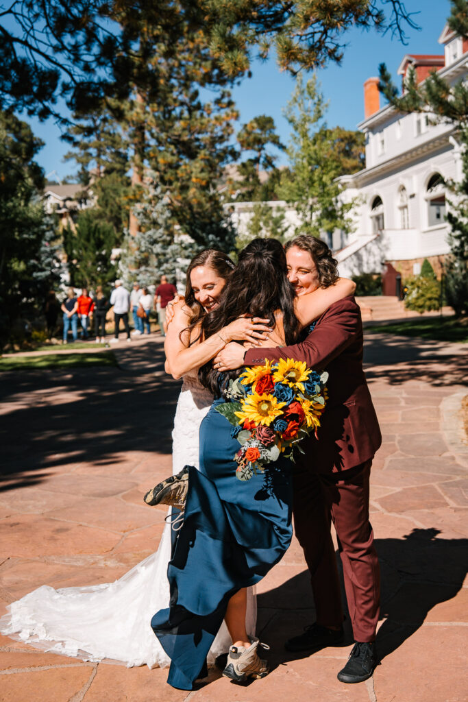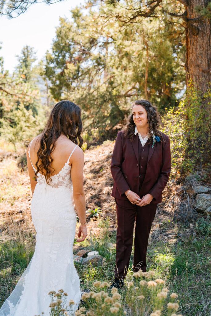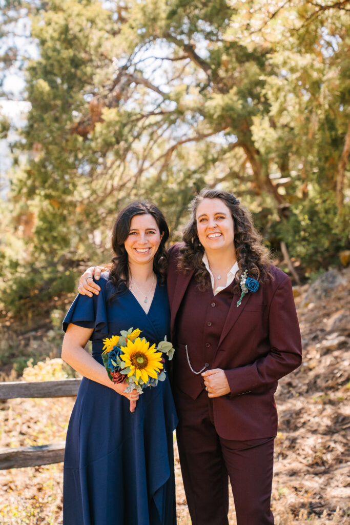 Danielle originally wanted to elope just the two of them, and Sara envisioned a bigger gathering. They found the perfect wedding compromise! They had a small ceremony at the Stanley Hotel, then went to Rocky Mountain National Park just the two of them, then met up again with everyone for dinner at the Bird’s Nest in Estes Park.