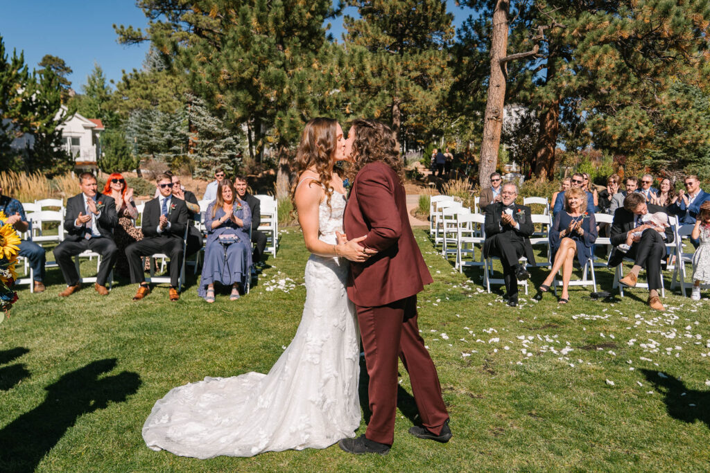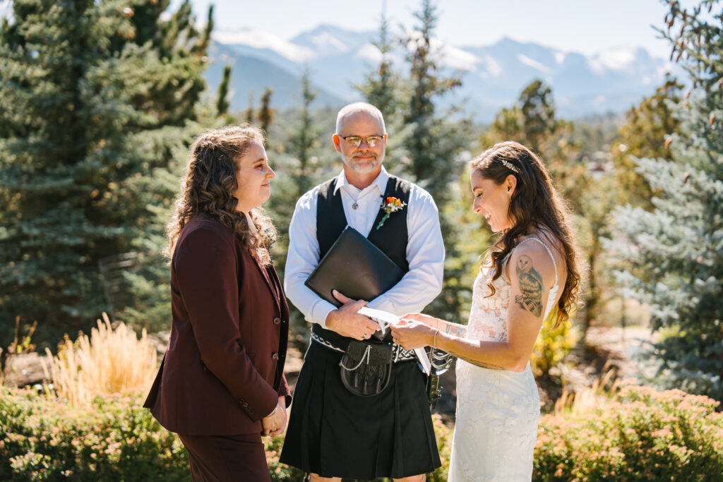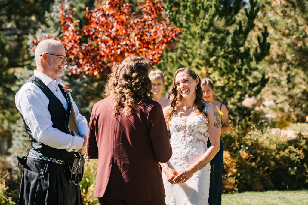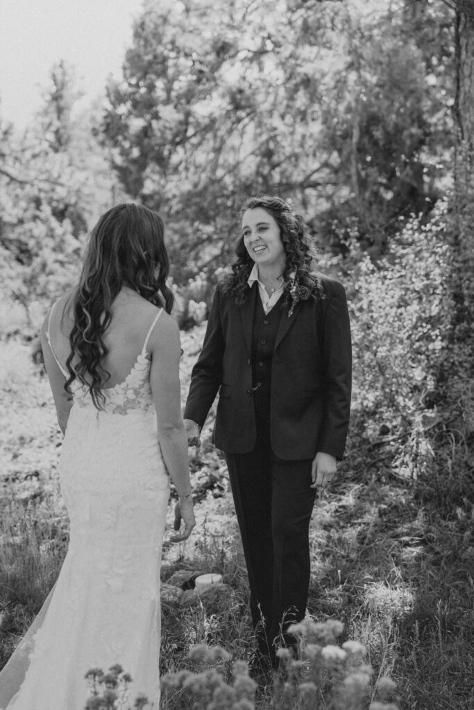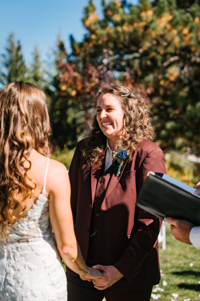 Danielle originally wanted to elope just the two of them, and Sara envisioned a bigger gathering. They found the perfect wedding compromise! They had a small ceremony at the Stanley Hotel, then went to Rocky Mountain National Park just the two of them, then met up again with everyone for dinner at the Bird’s Nest in Estes Park.