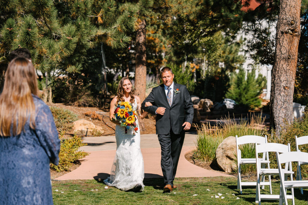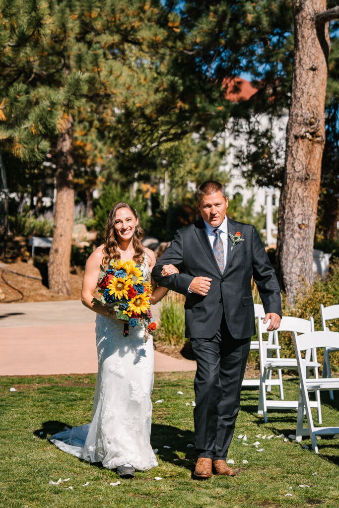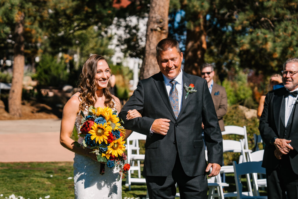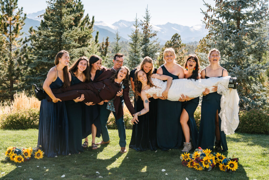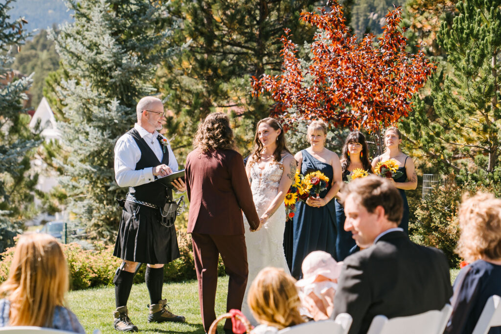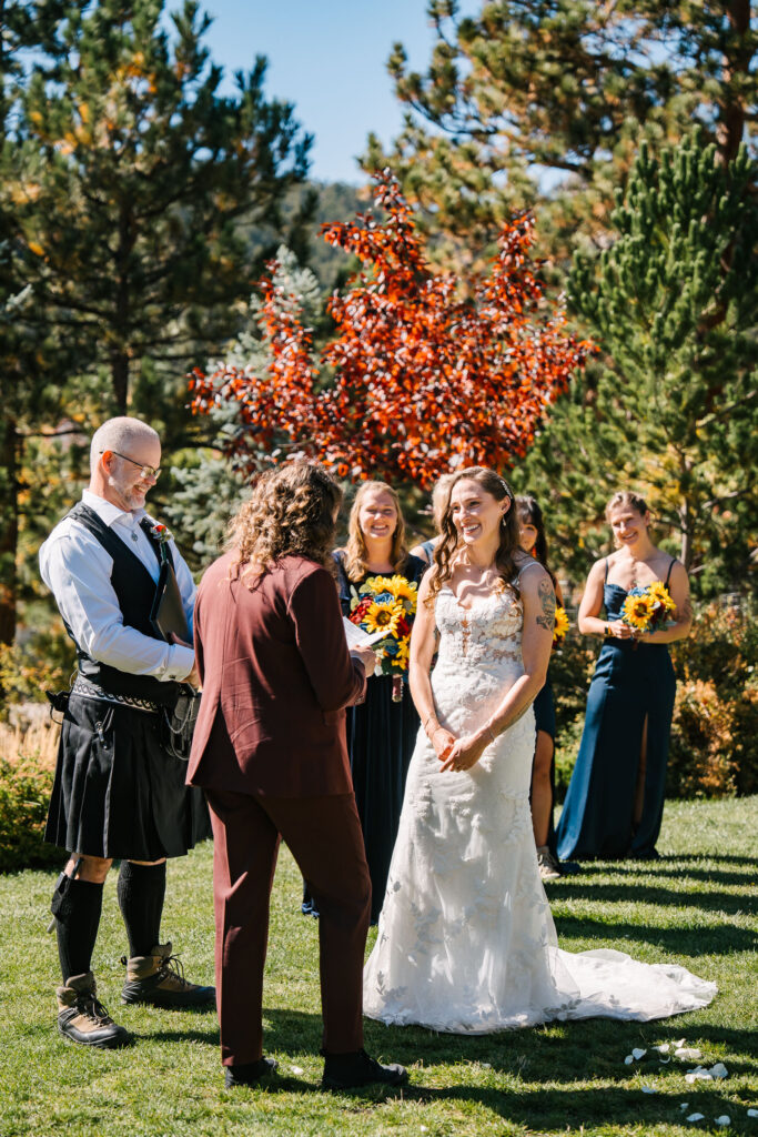 Set on the Longs Peak Lawn, their non-denominational ceremony featured sweeping mountain views and a surprise from HawkQuest! When it came time to exchange rings, a hawk from HawkQuest flew down the aisle and delivered the rings. It was a complete surprise for all of the guests!