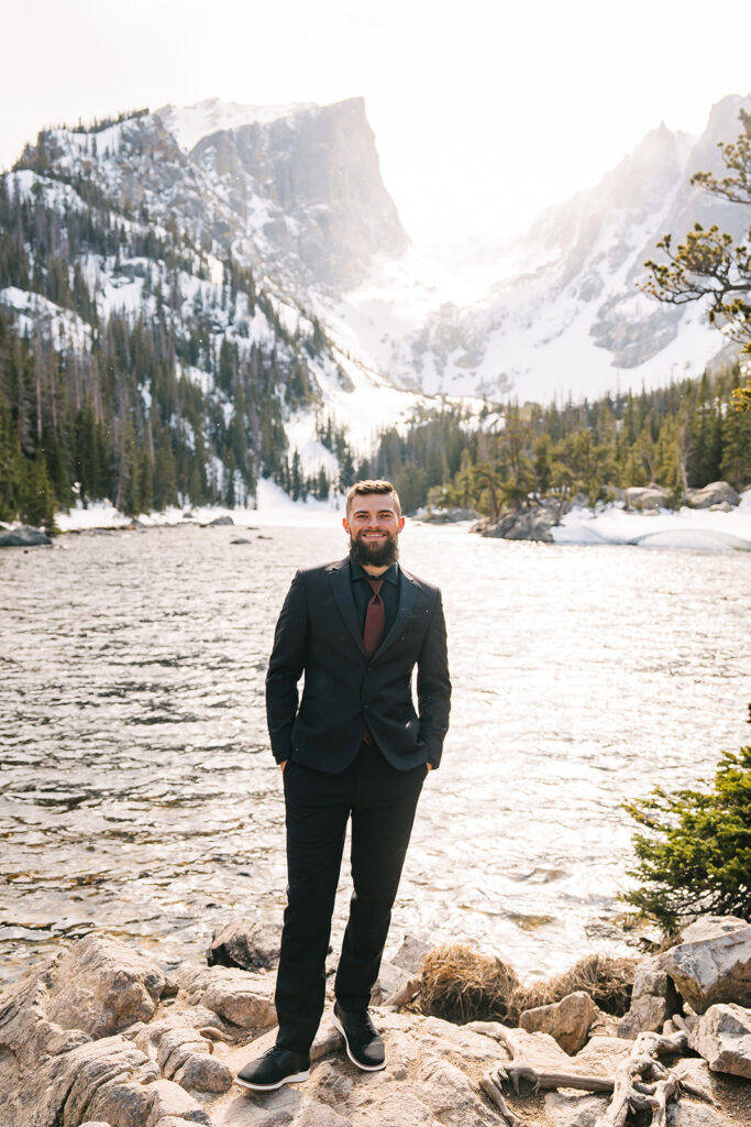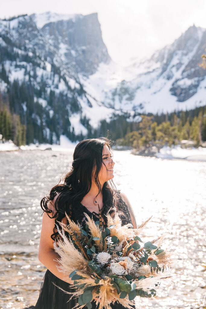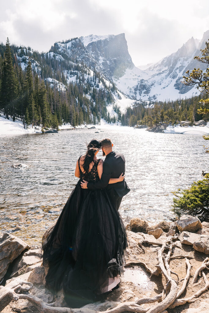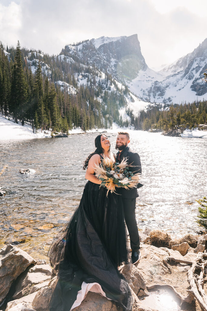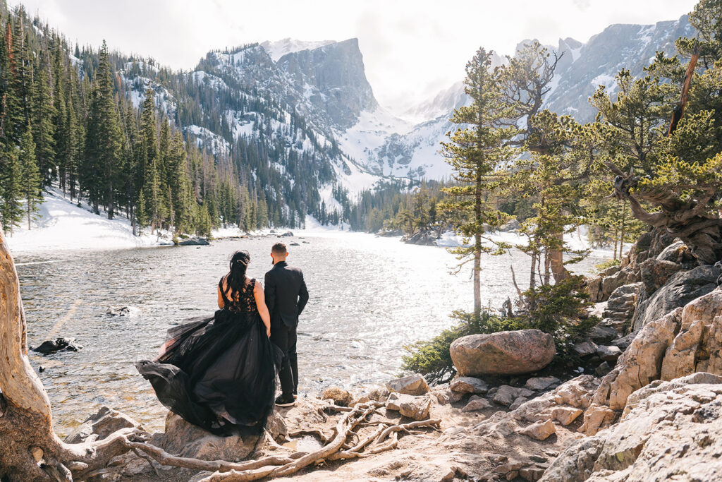 Alicia and Xack’s Rocky Mountain National Park elopement was a wild spring day with breathtaking views of Dream Lake and the surrounding mountains.